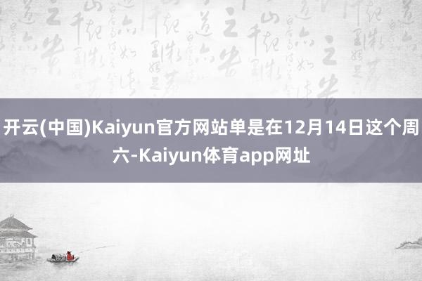 开云(中国)Kaiyun官方网站单是在12月14日这个周六-Kaiyun体育app网址