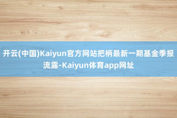 开云(中国)Kaiyun官方网站把柄最新一期基金季报流露-Kaiyun体育app网址