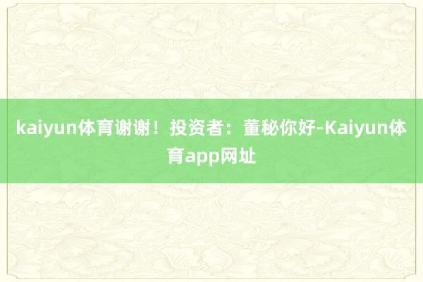 kaiyun体育谢谢!投资者:董秘你好-Kaiyun体育app网址